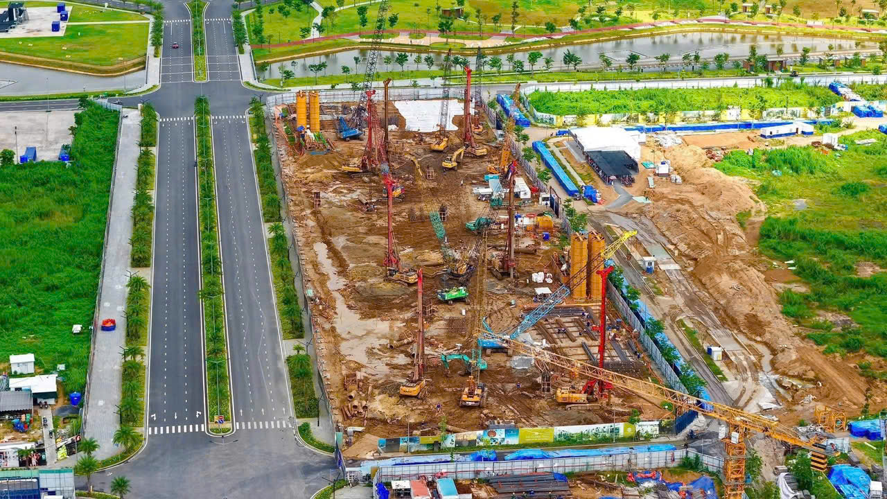 - Lumiere Midtown vẫn đang trong quá trình dậm đất ép cọc, chuẩn bị cho quá trình xây dựng móng cọc